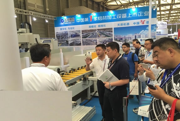 作為國內(nèi)第一家鋁材加工設(shè)備上市企業(yè),天辰股份緊跟國內(nèi)外工業(yè)鋁行業(yè)發(fā)展潮流,始終致力于高端鋁加工設(shè)備的研發(fā)與制造,此次天辰股份展出的鋁模板鋸沖自動生產(chǎn)線及數(shù)控五軸龍門加工中心獲得了廣大專業(yè)觀眾及業(yè)內(nèi)參展企業(yè)的一致好評。尤其是自主研發(fā)的國內(nèi)首臺鋁模板鋸沖自動生產(chǎn)線,以其先進(jìn)的設(shè)計理念、超高的生產(chǎn)效率及大量節(jié)省人工的自動化程度,廣受贊譽。